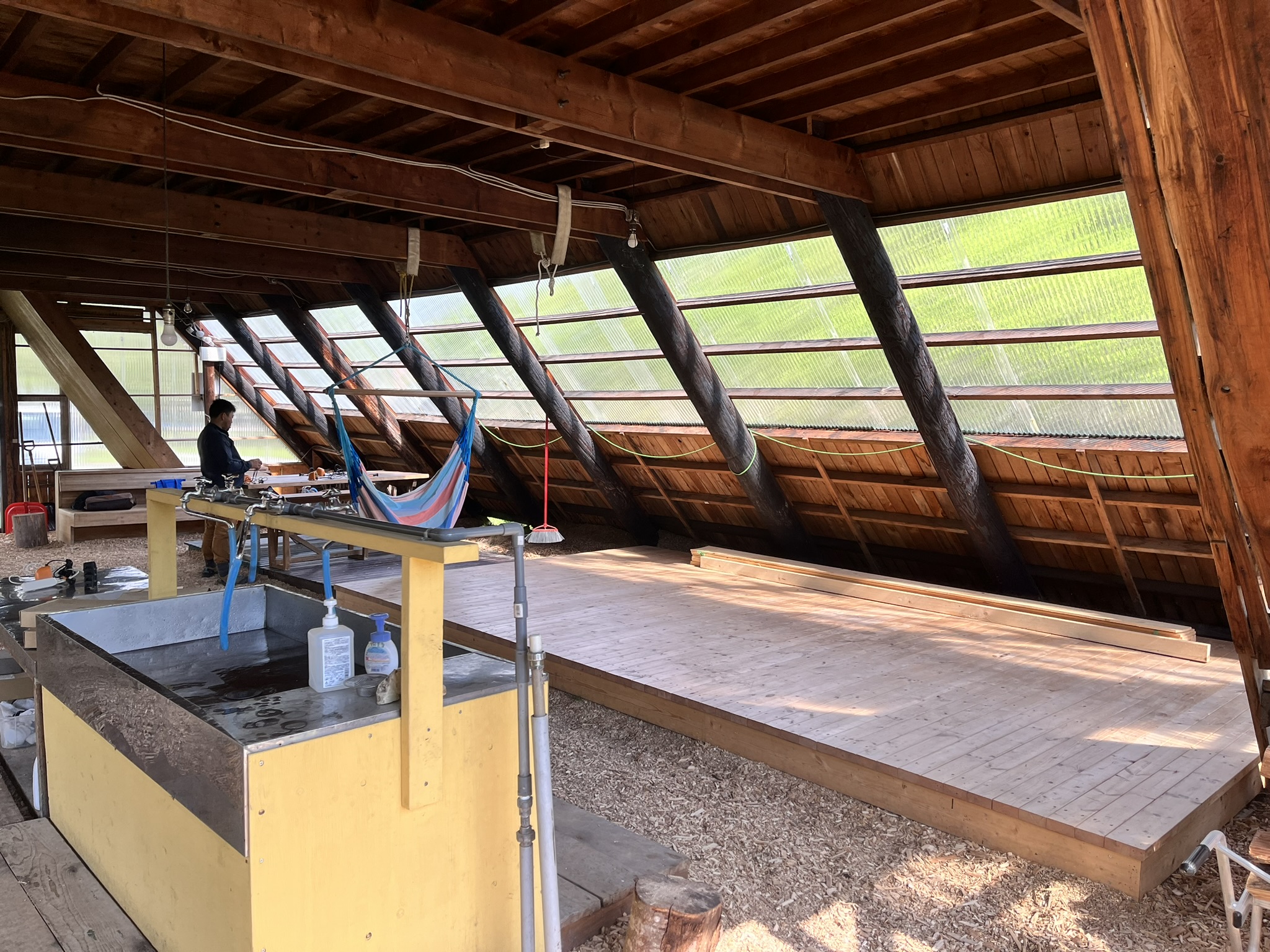 ▲2階は 山小屋風。 寝具、寝袋をご用意下さい。
