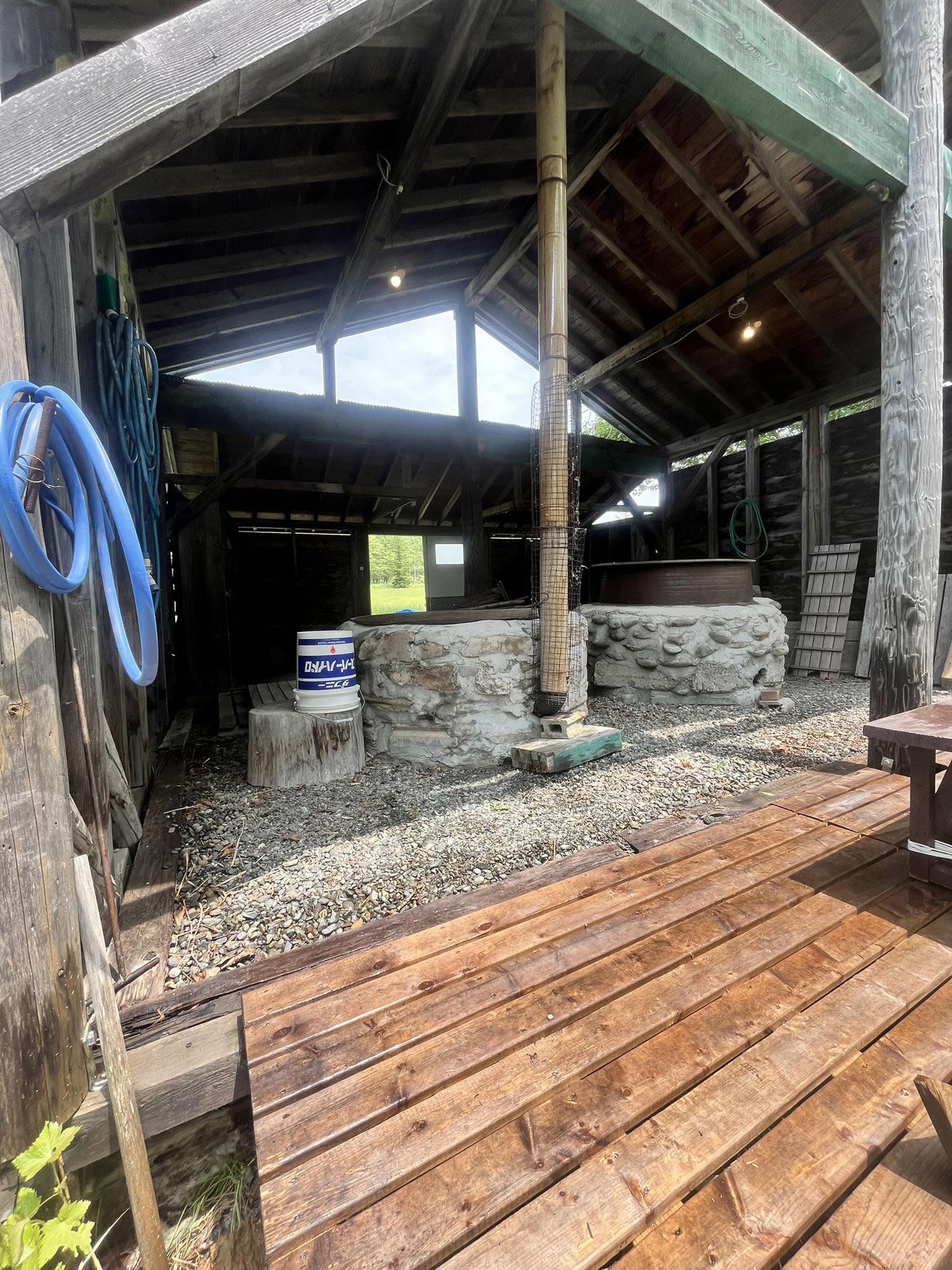 ワイルドな五右衛門風呂です。やけどにご注意ください。