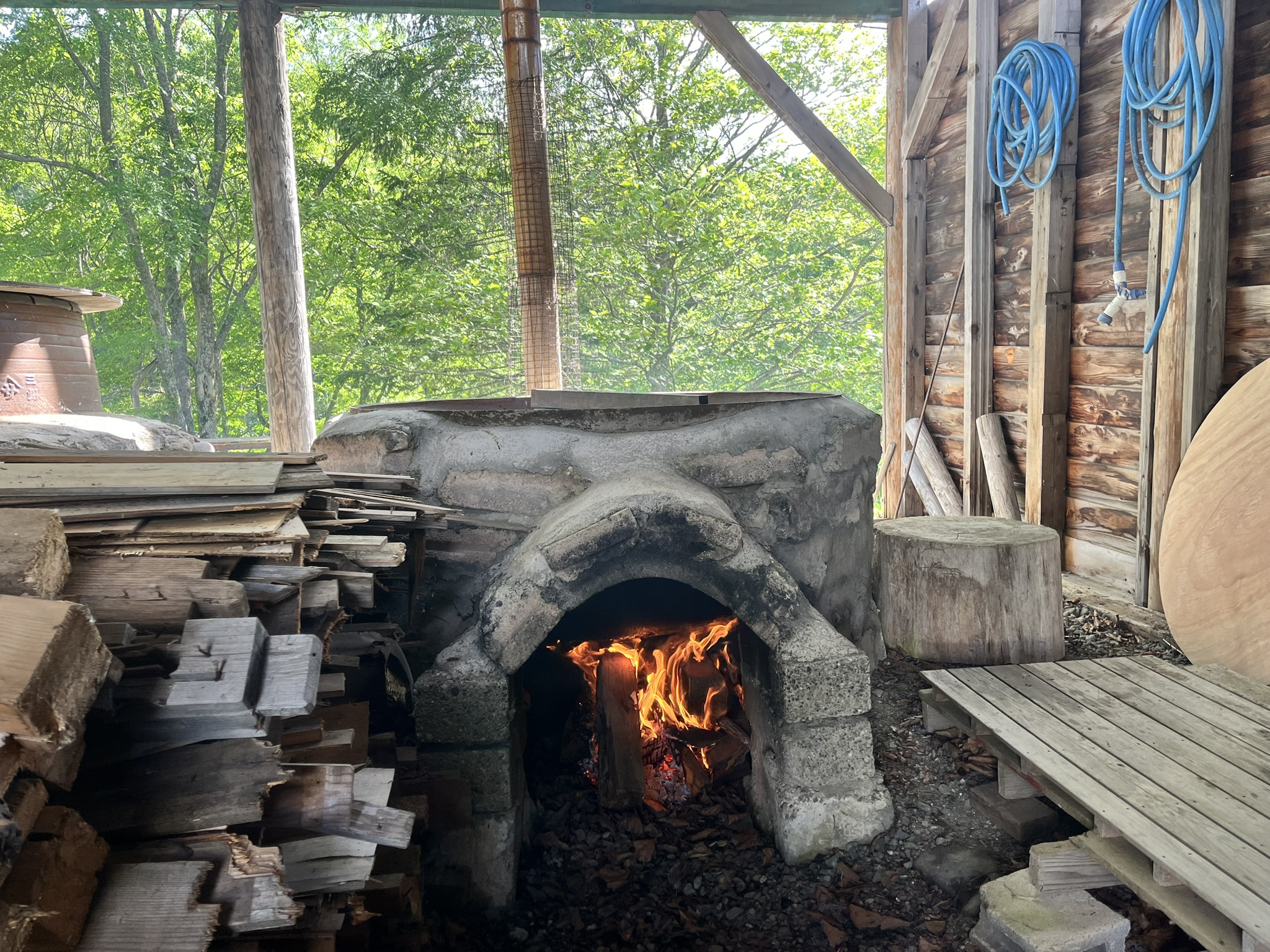 別途、薪ストーブ用の薪ストーブ用の薪を1コンテナ¥2,000で販売しております。